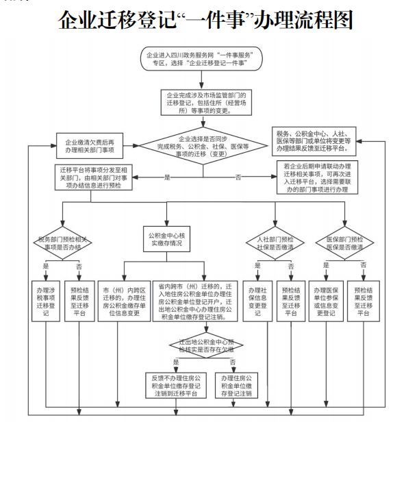 办理范围:即日起,在四川省范围内办理企业迁移登记的公司、非公司企业法人、 合伙企业、个人独资企业及其分支机构。