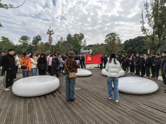 活动伊始,大家有序参观邓小平故居和陈列馆。陈列馆以“走出广安”“戎马生涯”“艰辛探索”“非常岁月”“开创伟业”五个单元为脉络,通过一件件历经岁月洗礼的珍贵文物、一幅幅定格历史瞬间的泛黄照片、一段段记录峥嵘往事的真实影像,运用先进的陈列布展和声、光、电现代高科技手段,全景式生动再现邓小平同志波澜壮阔的革命历程与功绩卓著的壮丽人生。所有人驻足凝视,认真聆听讲解,从早期的赴法勤工俭学,到后来的救国救民,再到社会主义建设、改革开放时期的成功实践,大家看到了邓小平同志作为改革开放总设计师的高瞻远瞩和伟大创举,同时被小平同志坚定的共产主义信仰、非凡的政治智慧以及始终心怀天下的家国情怀深深打动。